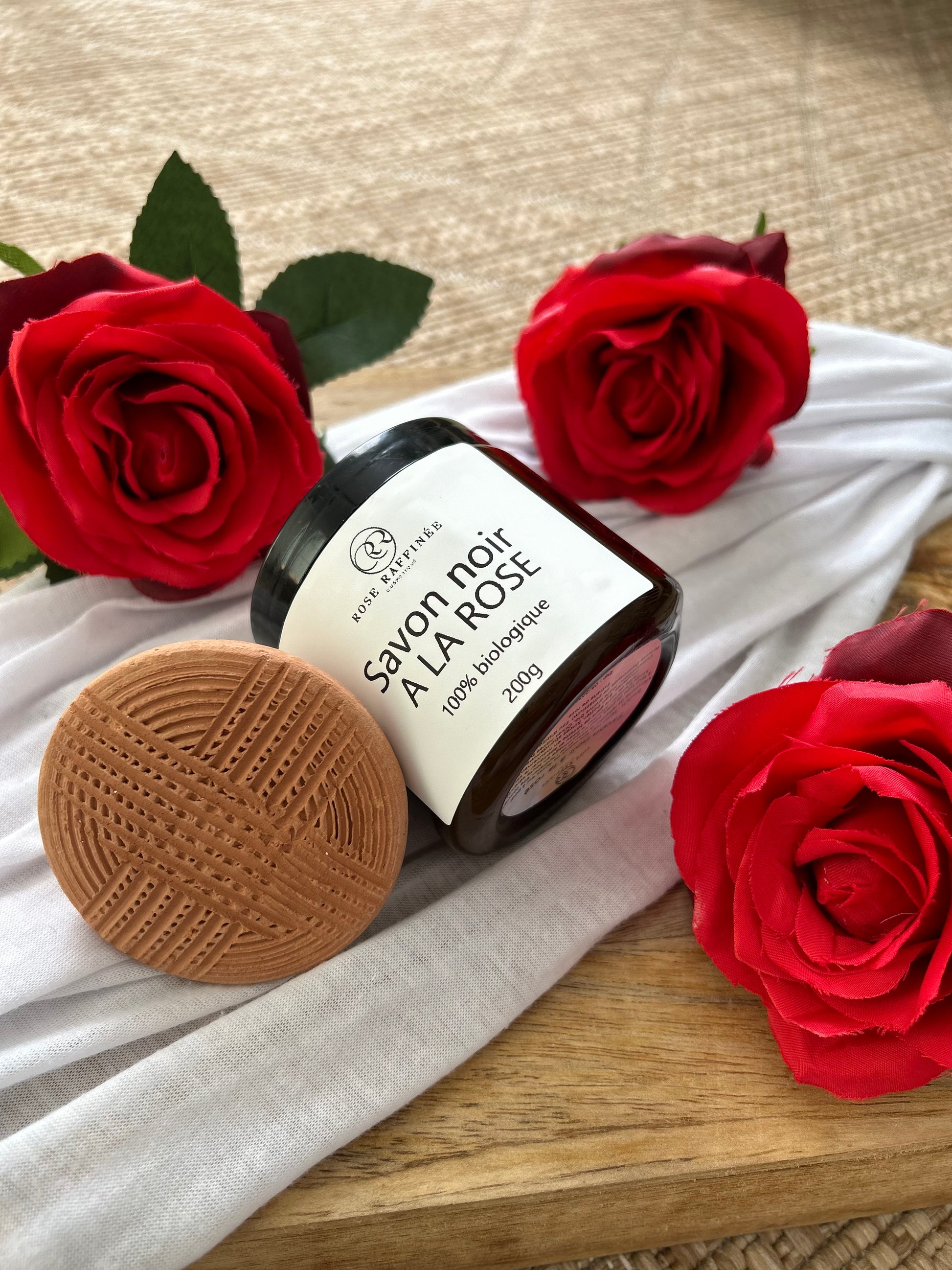 Savon Noir à la Rose : L’alliance du nettoyage profond et de la douceur florale